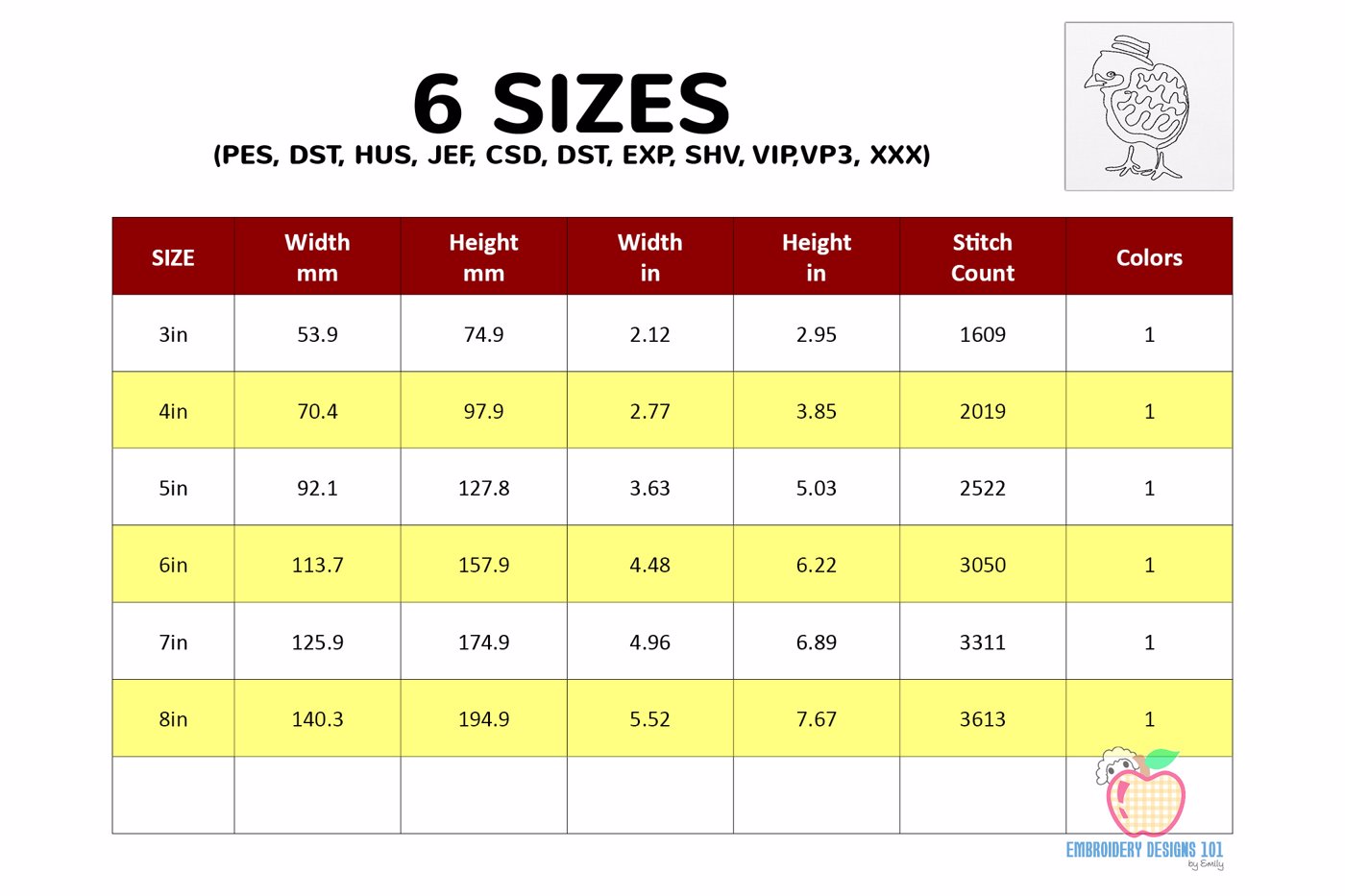 The .ZIP file will contain the following formats: .PES, .CSD, .DST, .EXP, .HUS, .JEF, .SHV, .VIP, .XXX, .VP3, .PEC