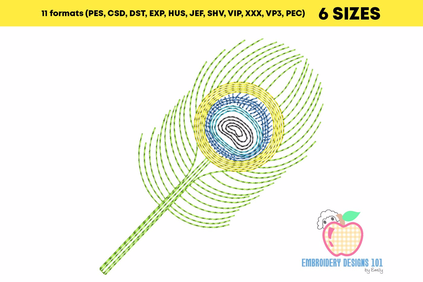 The .ZIP file will contain the following formats: .PES, .CSD, .DST, .EXP, .HUS, .JEF, .SHV, .VIP, .XXX, .VP3, .PEC