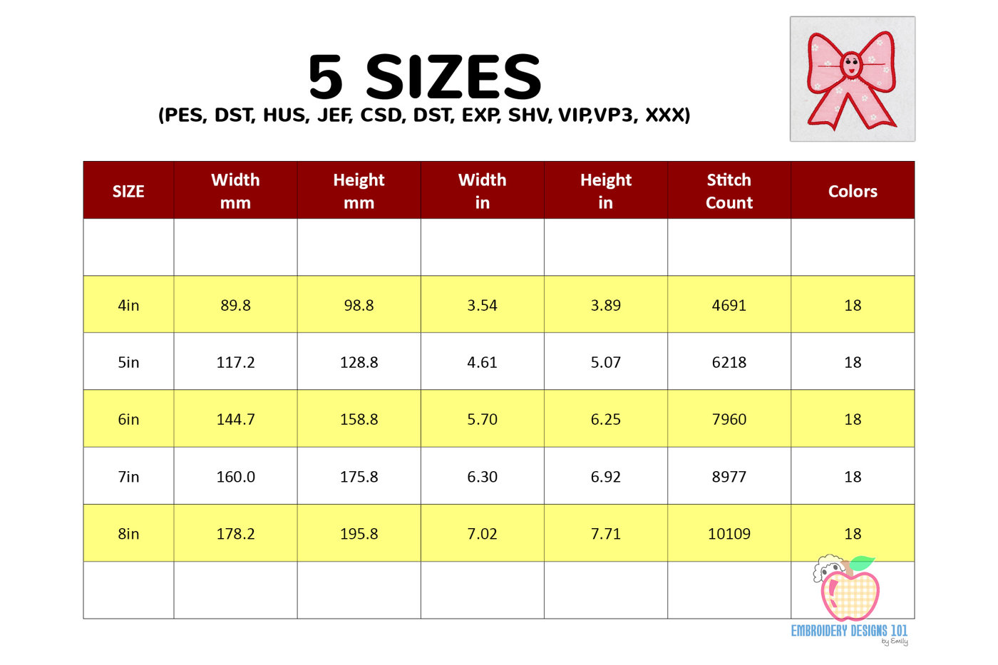 The .ZIP file will contain the following formats: .PES, .CSD, .DST, .EXP, .HUS, .JEF, .SHV, .VIP, .XXX, .VP3, .PEC