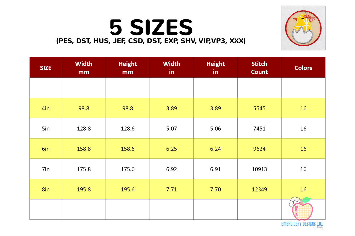 The .ZIP file will contain the following formats: .PES, .CSD, .DST, .EXP, .HUS, .JEF, .SHV, .VIP, .XXX, .VP3, .PEC
