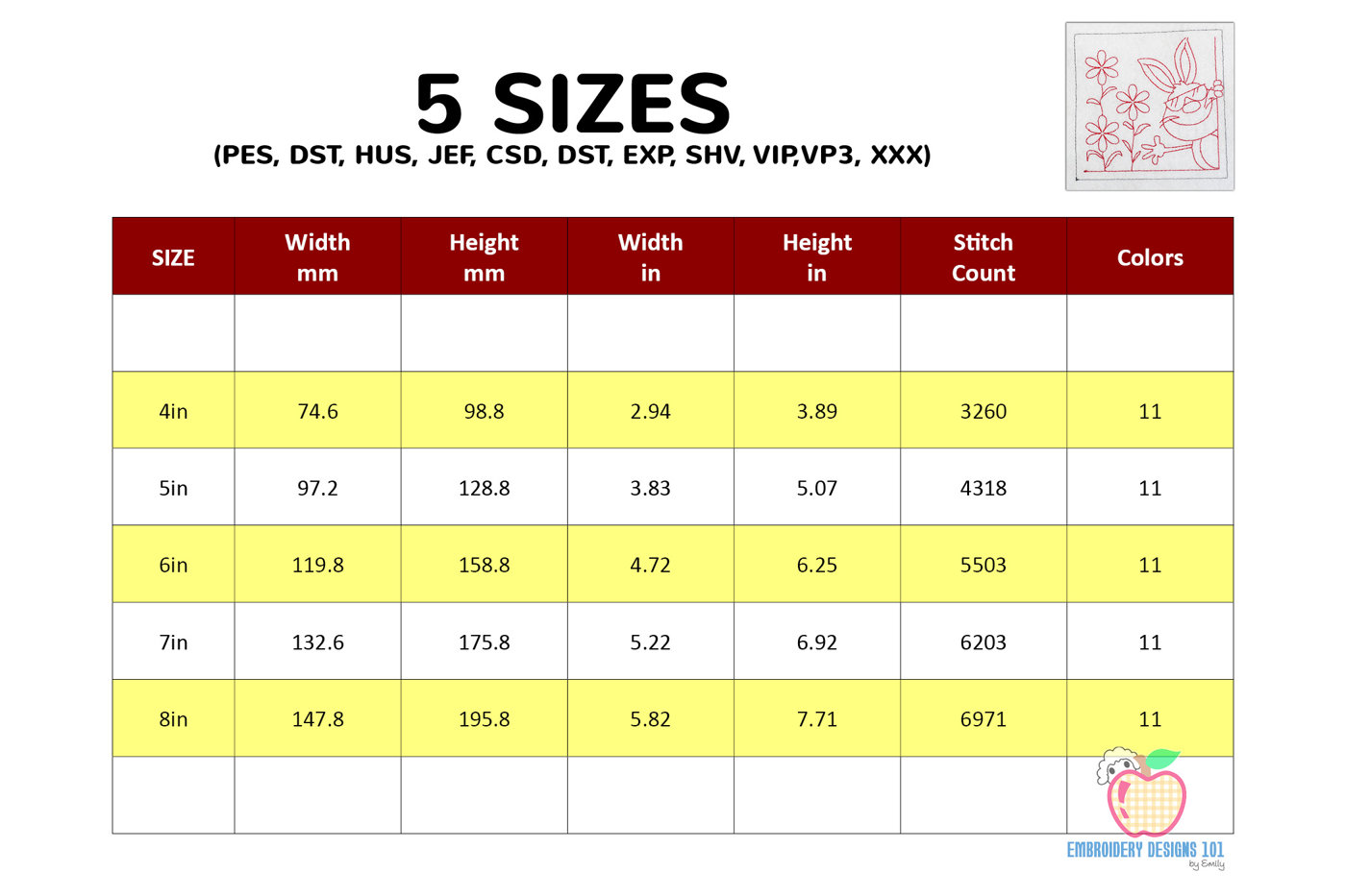 The .ZIP file will contain the following formats: .PES, .CSD, .DST, .EXP, .HUS, .JEF, .SHV, .VIP, .XXX, .VP3, .PEC