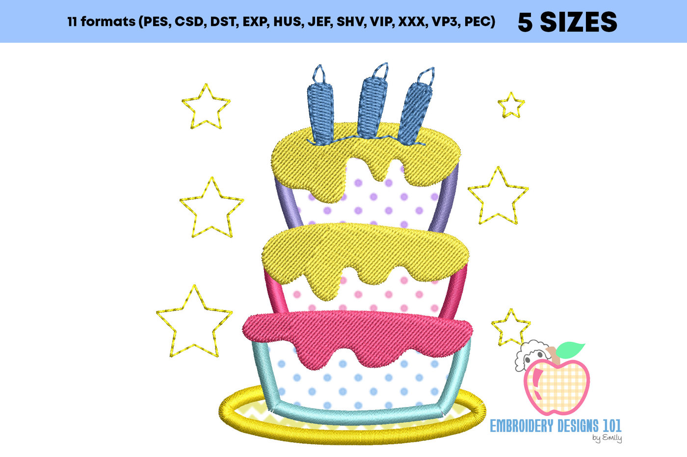 Layered Birthday Cake Applique for Kids