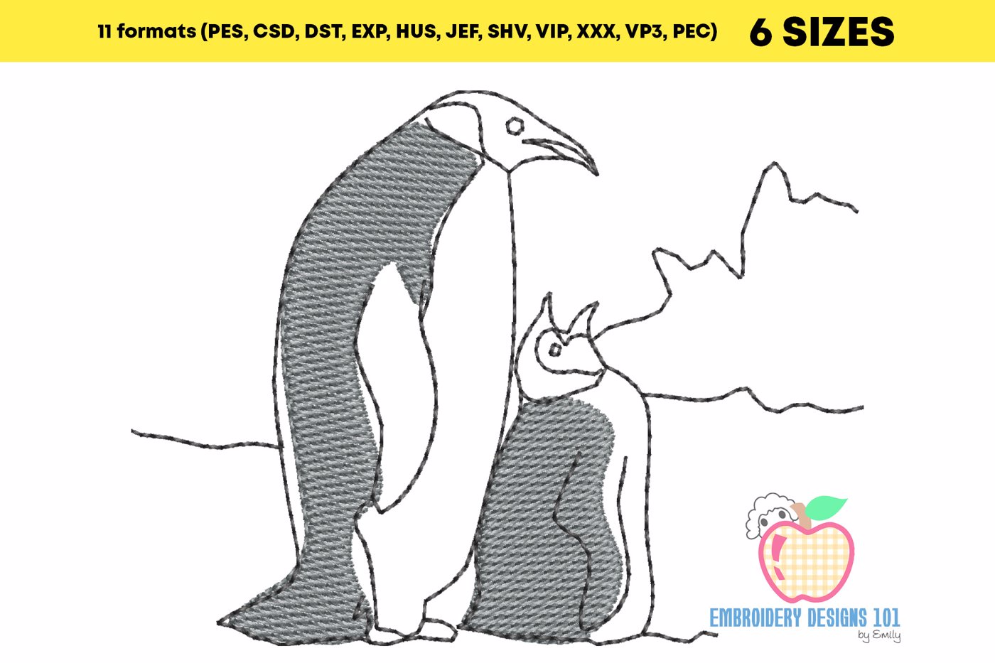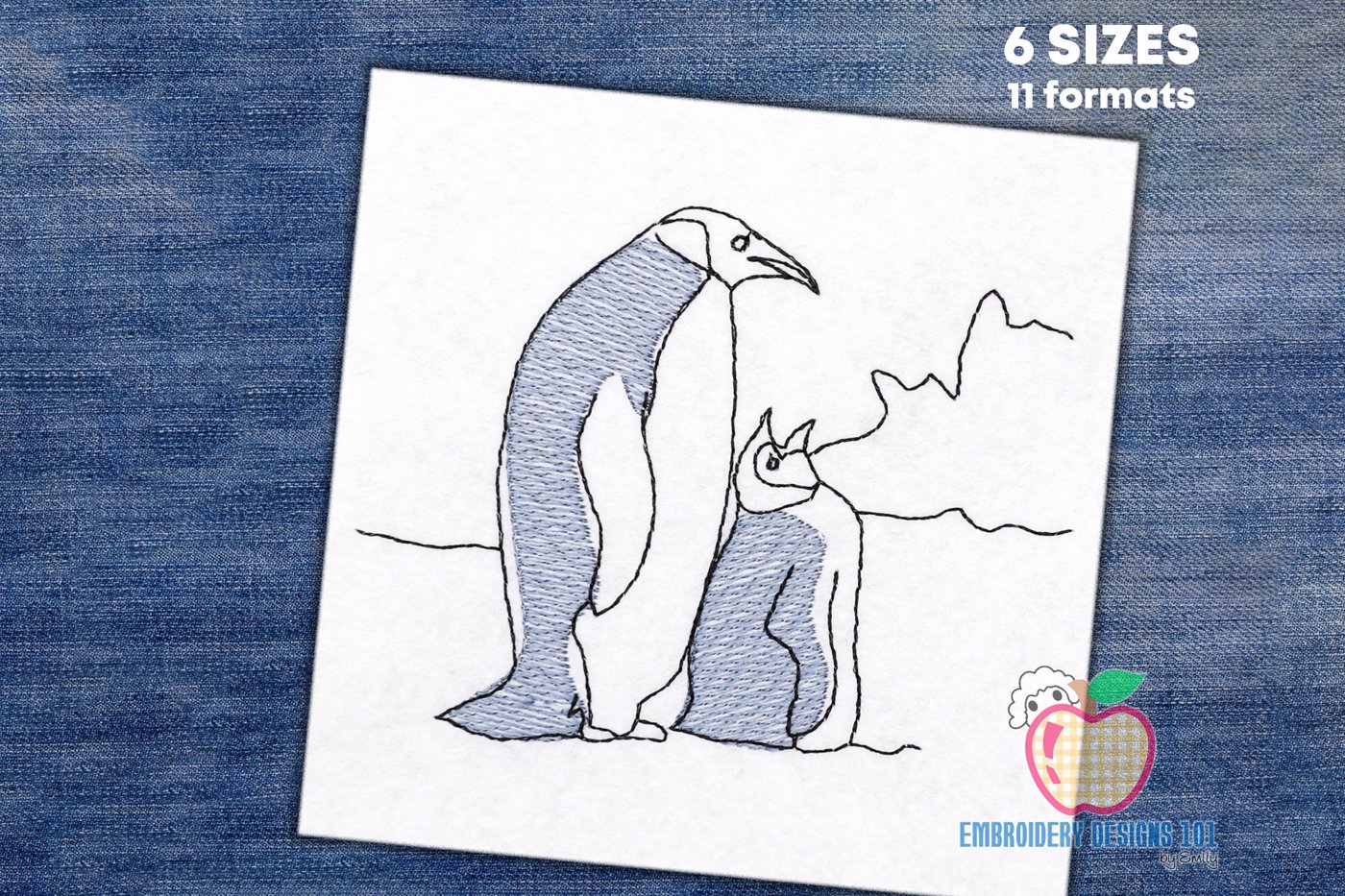 Mother Penguin with Baby Penguin Sketch Embroidery
