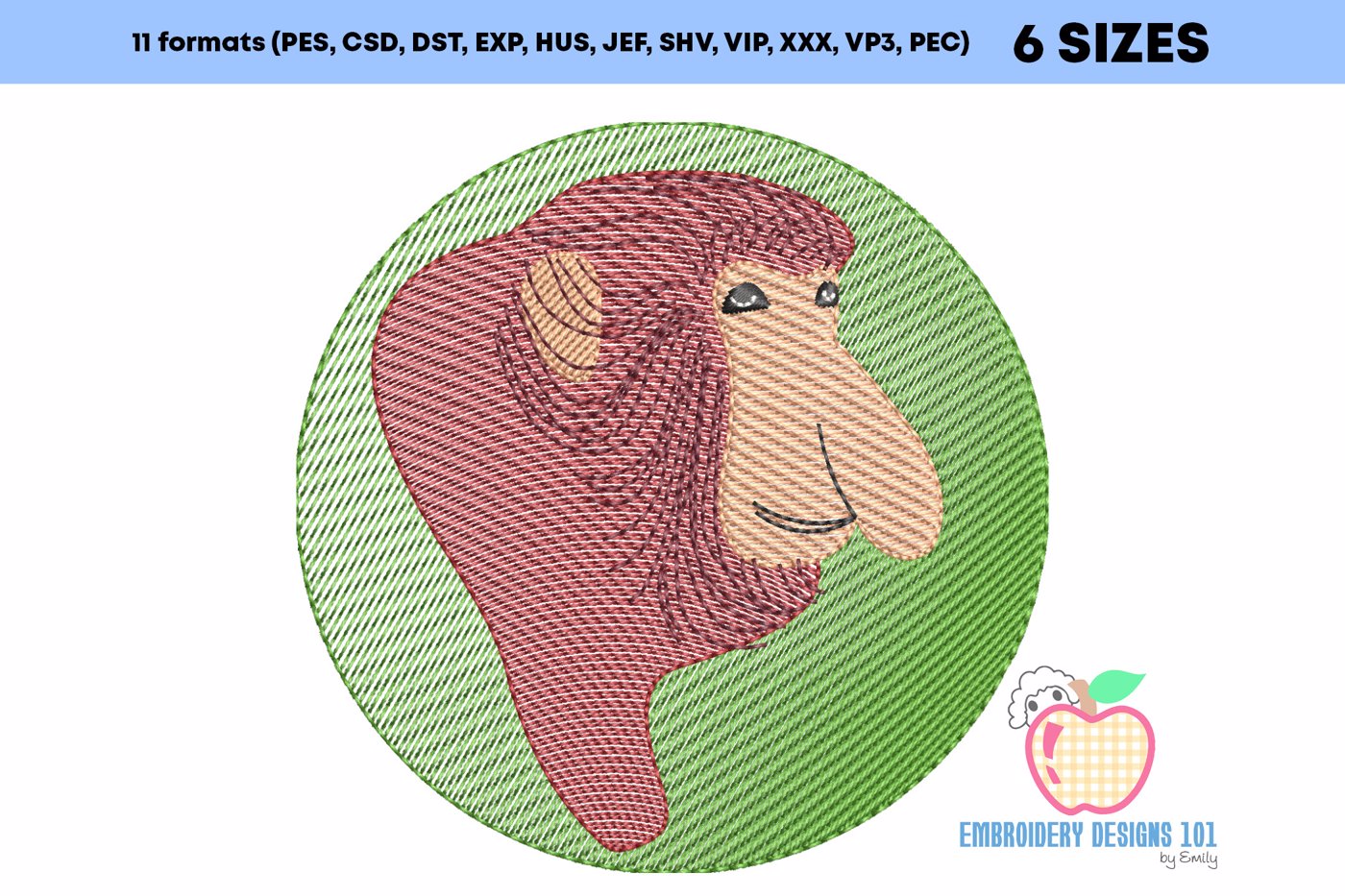 Proboscis Monkey Face in Circle Quick Stitch
