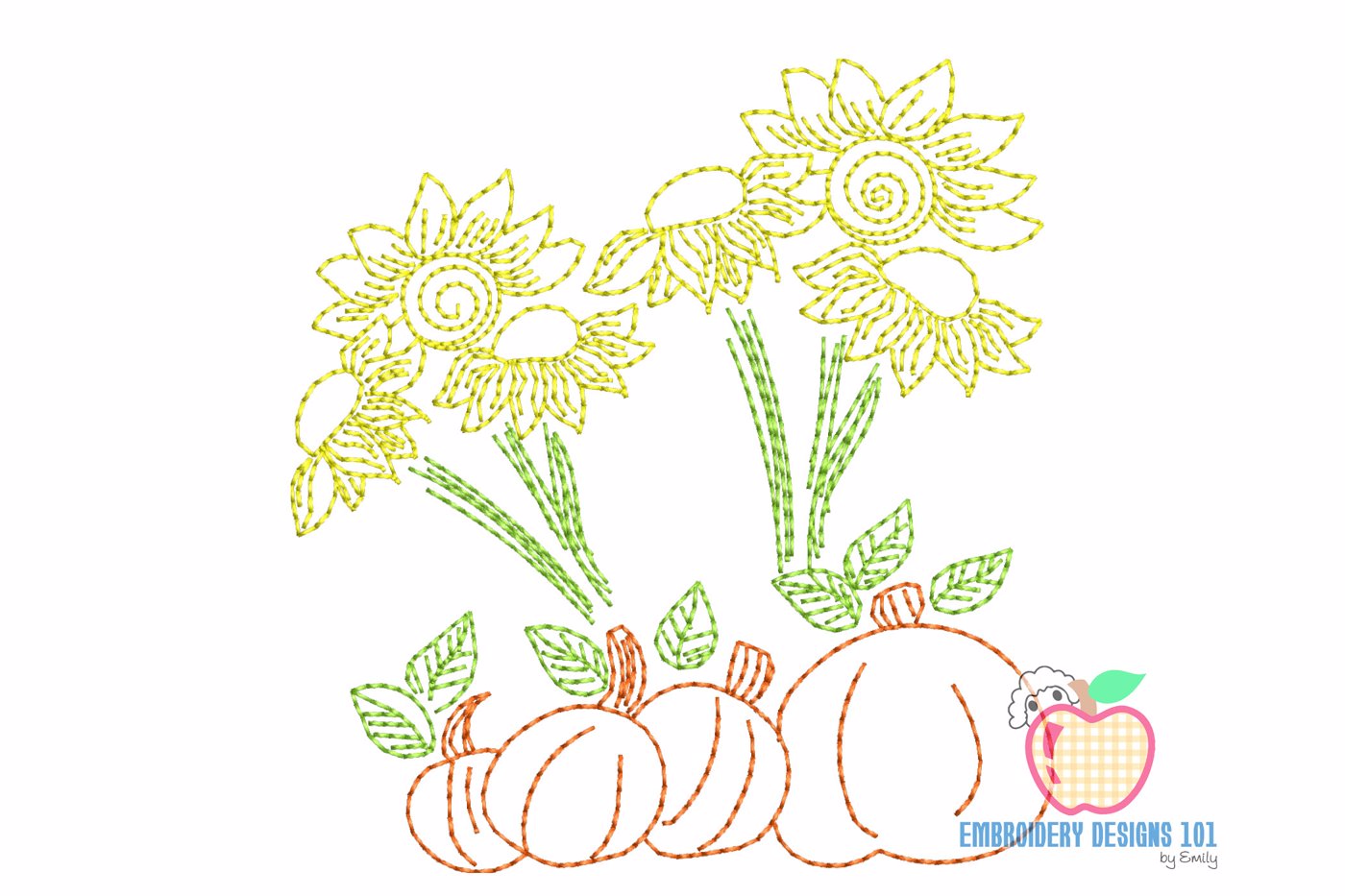 Sunflowers with Pumpkins Line Art