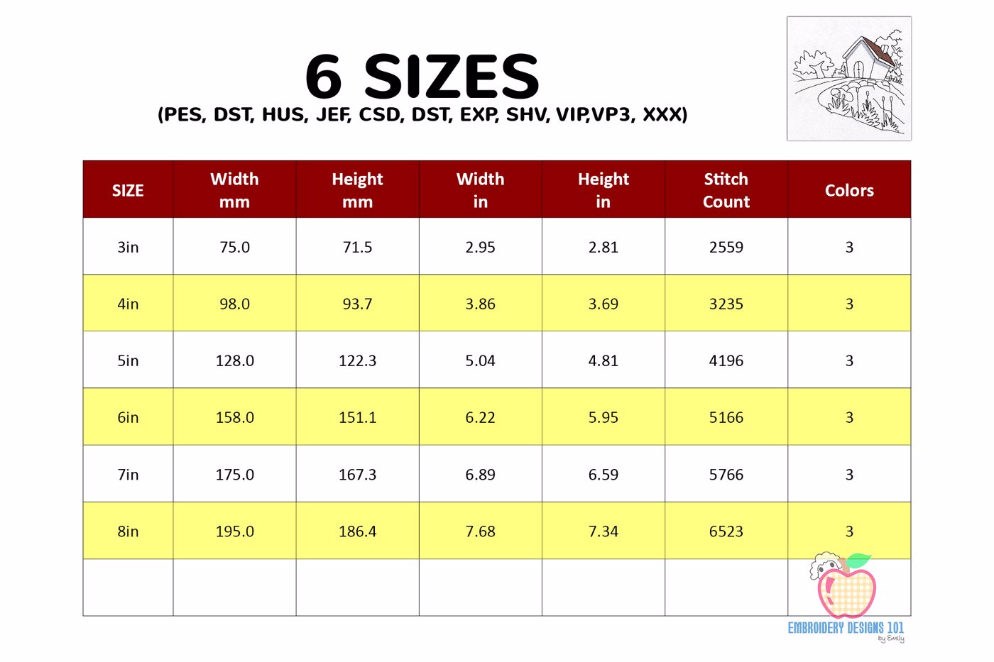 The .ZIP file will contain the following formats: .PES, .CSD, .DST, .EXP, .HUS, .JEF, .SHV, .VIP, .XXX, .VP3, .PEC