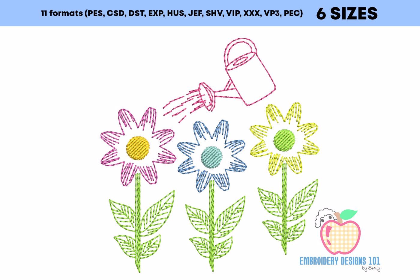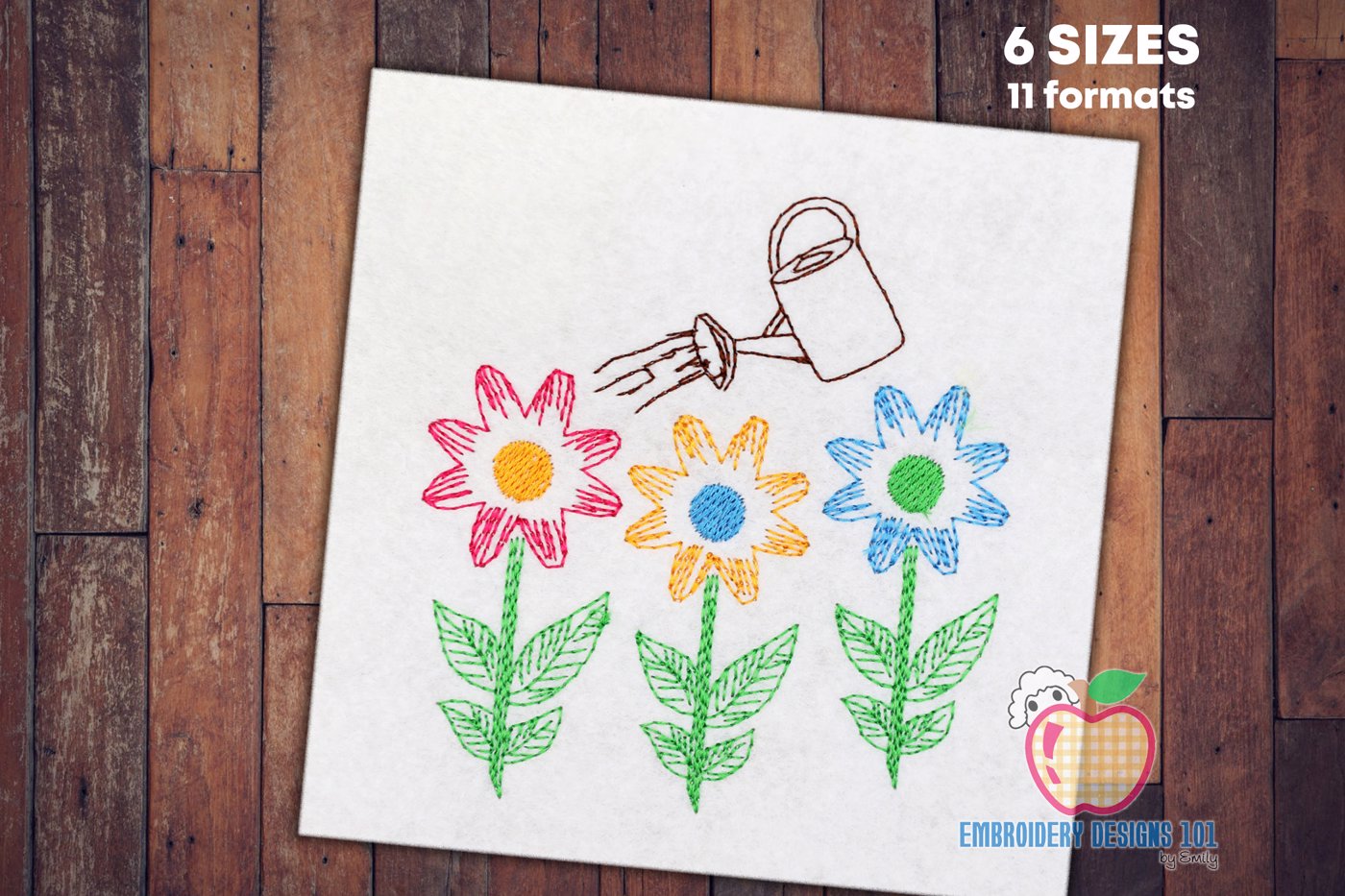 Watering Can with Flower Garden Sketch Embroidery