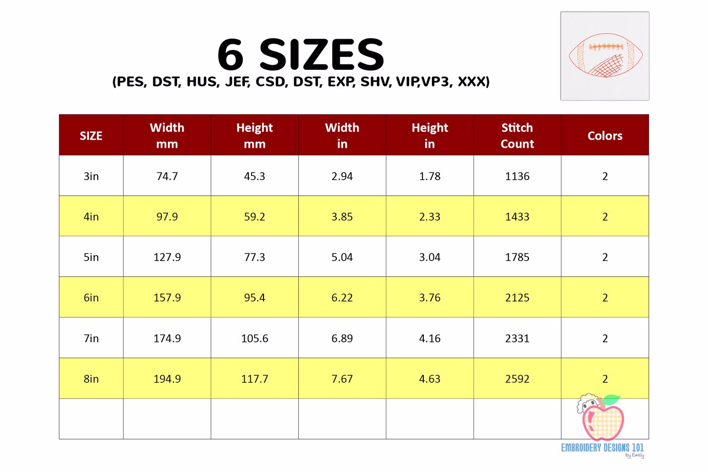 The .ZIP file will contain the following formats: .PES, .CSD, .DST, .EXP, .HUS, .JEF, .SHV, .VIP, .XXX, .VP3, .PEC