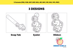 This is In The Hoop Machine Embroidery Key Fob Design, including all 3 versions (Snap Tab, Eyelet and Ribbon), each design is 4x4 Hoop friendly, or if you have 5x7 hoop you can create all 3 versions in Single Hoop.
