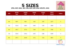 The .ZIP file will contain the following formats: .PES, .CSD, .DST, .EXP, .HUS, .JEF, .SHV, .VIP, .XXX, .VP3, .PEC