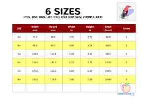 The .ZIP file will contain the following formats: .PES, .CSD, .DST, .EXP, .HUS, .JEF, .SHV, .VIP, .XXX, .VP3, .PEC