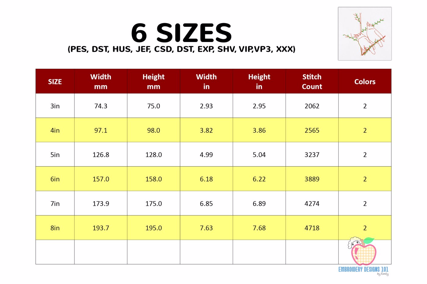 The .ZIP file will contain the following formats: .PES, .CSD, .DST, .EXP, .HUS, .JEF, .SHV, .VIP, .XXX, .VP3, .PEC