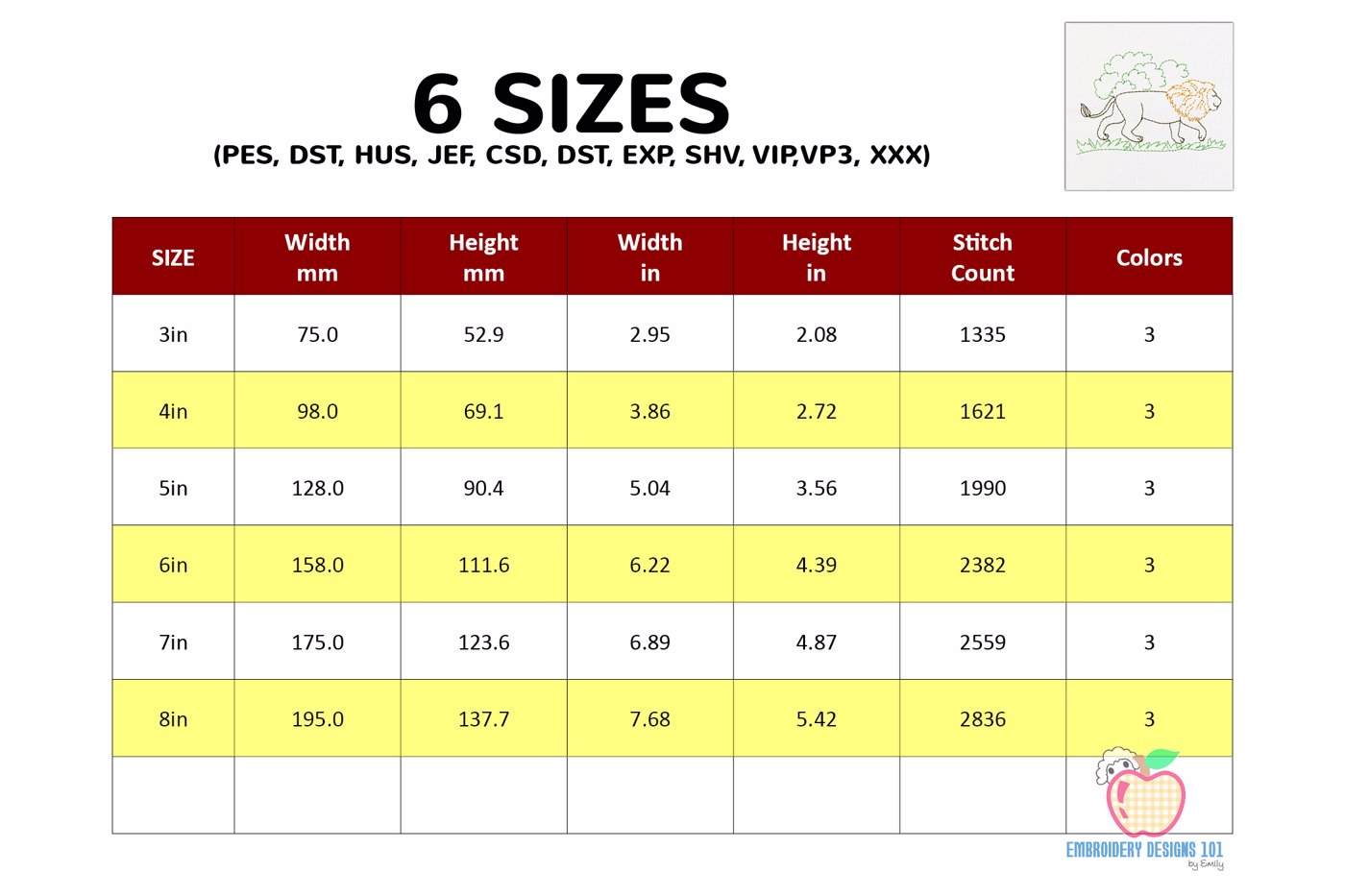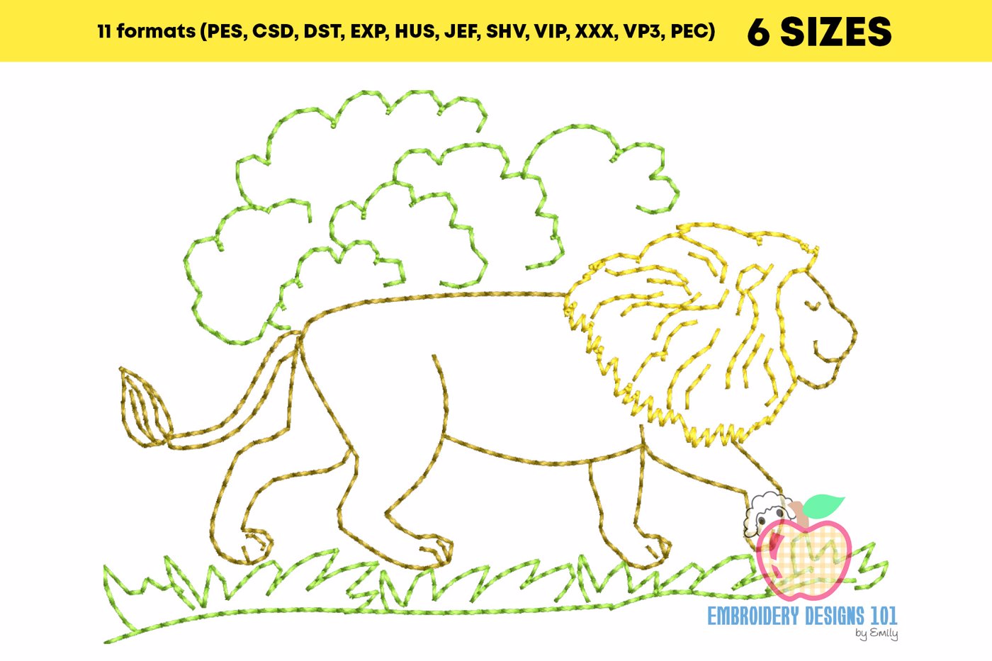The .ZIP file will contain the following formats: .PES, .CSD, .DST, .EXP, .HUS, .JEF, .SHV, .VIP, .XXX, .VP3, .PEC